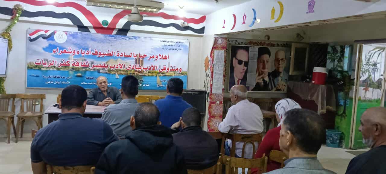 وفي بيت ثقافة كفر الزيات، تابع العديد من الرواد، وأدباء ومثقفي الغربية، باقة منوعة من الفعاليات الأدبية والتثقيفية والتوعوية، والتي ضمت الحديث عن ضرورة ترشيد الموارد، وفي مقدمتها المياه، فيما استضاف نادي الأدب برئاسة الشاعر محمود سعد، الشاعر جابر بسيوني، رئيس نادي الأدب بقصر ثقافة الأنفوشي، وذلك لمناقشة تجربته الإبداعية في مجال الشعر.