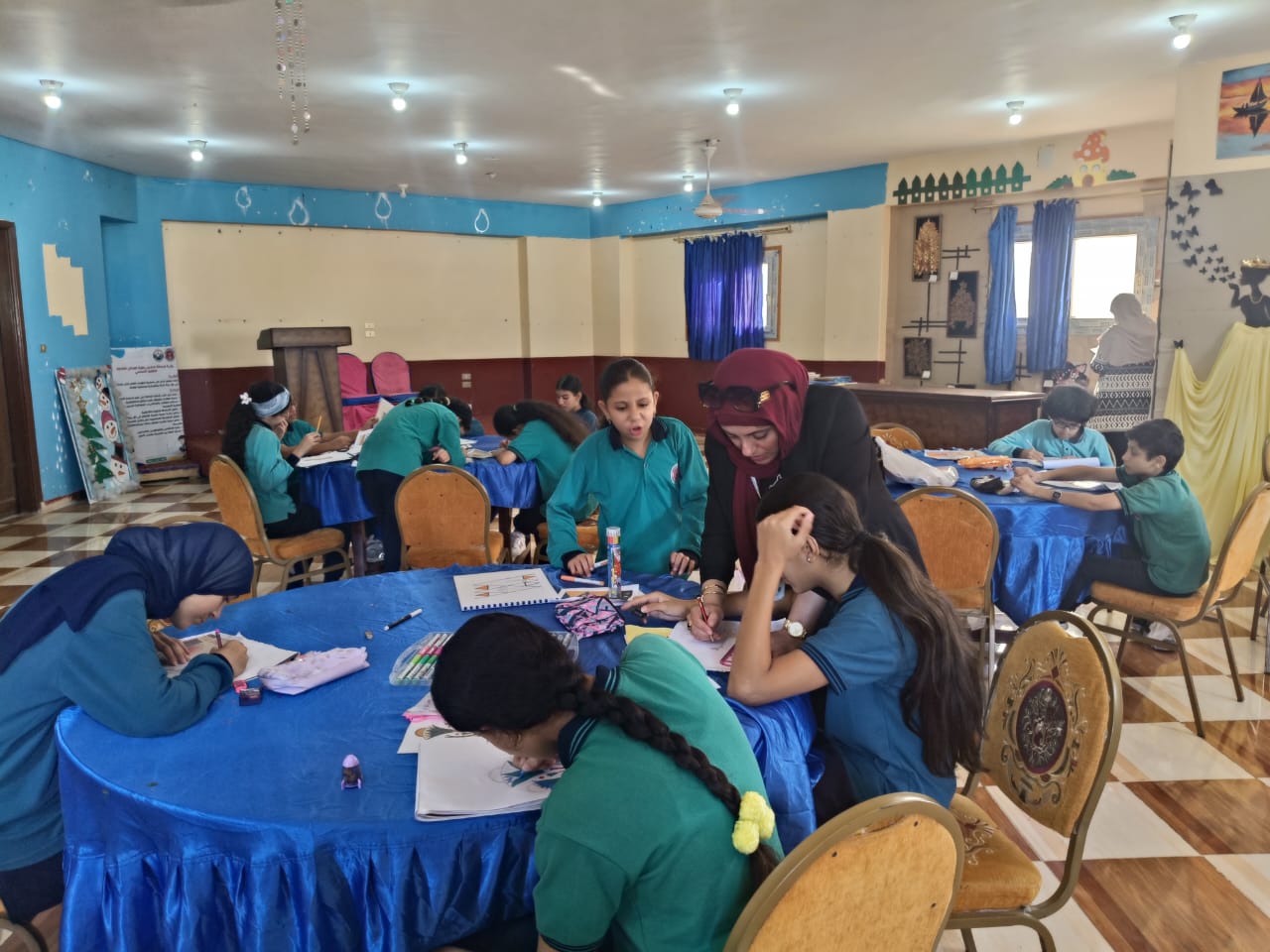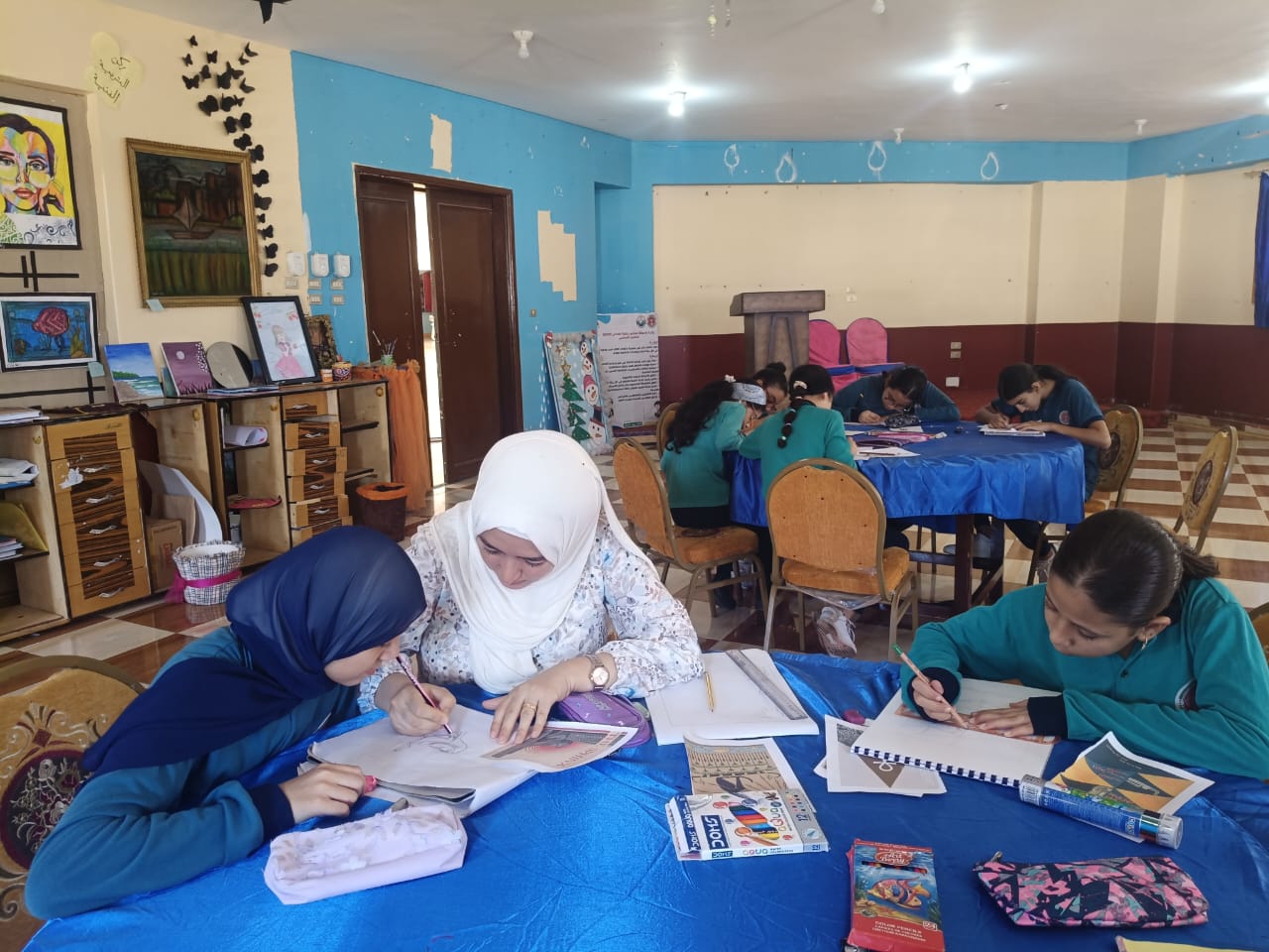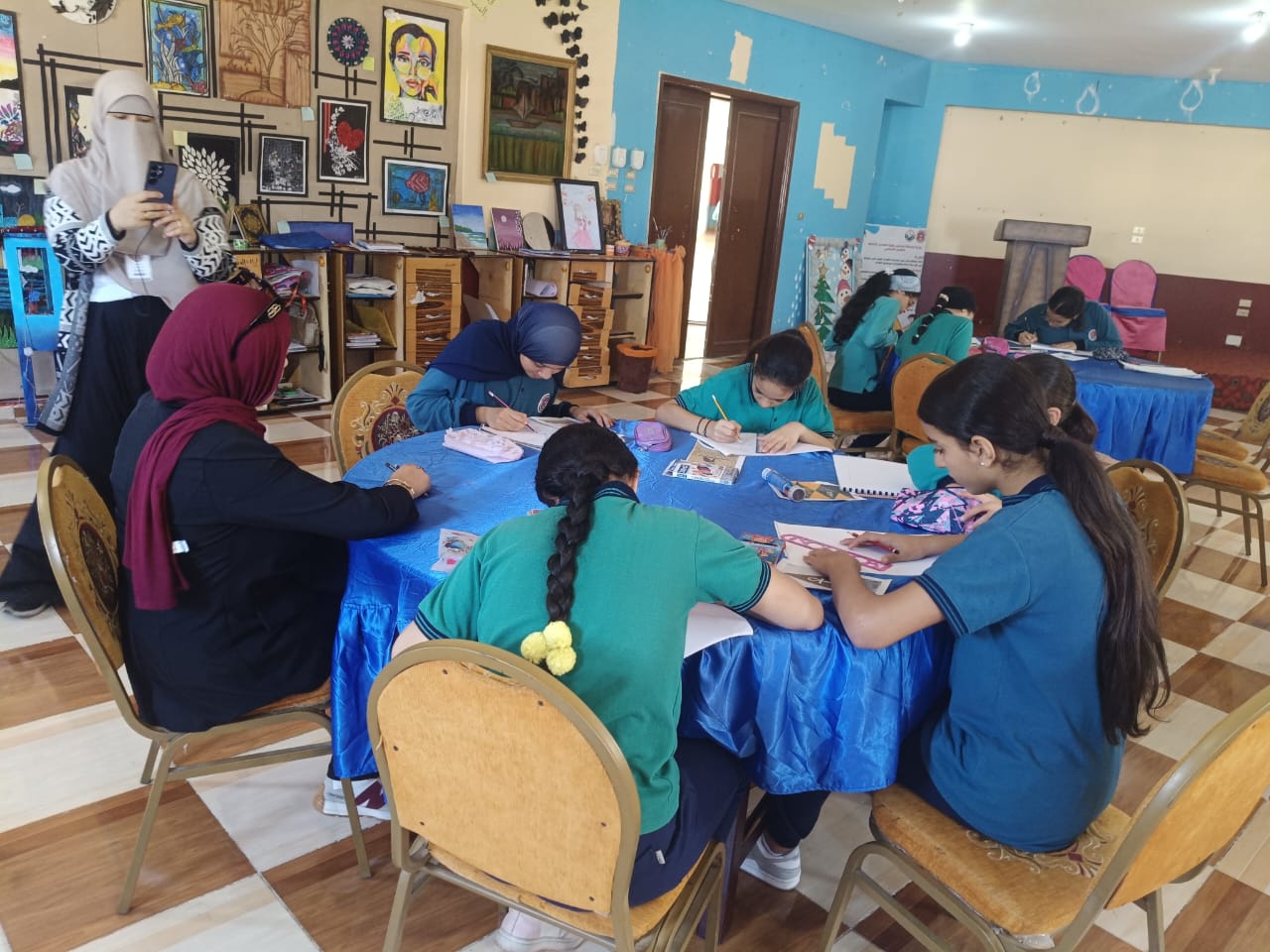فيما شهدت مدرسة زهرة المدائن، ورشة تصميم ملصقات لتشجيع السياحة تدريب الفنانة أميرة علي