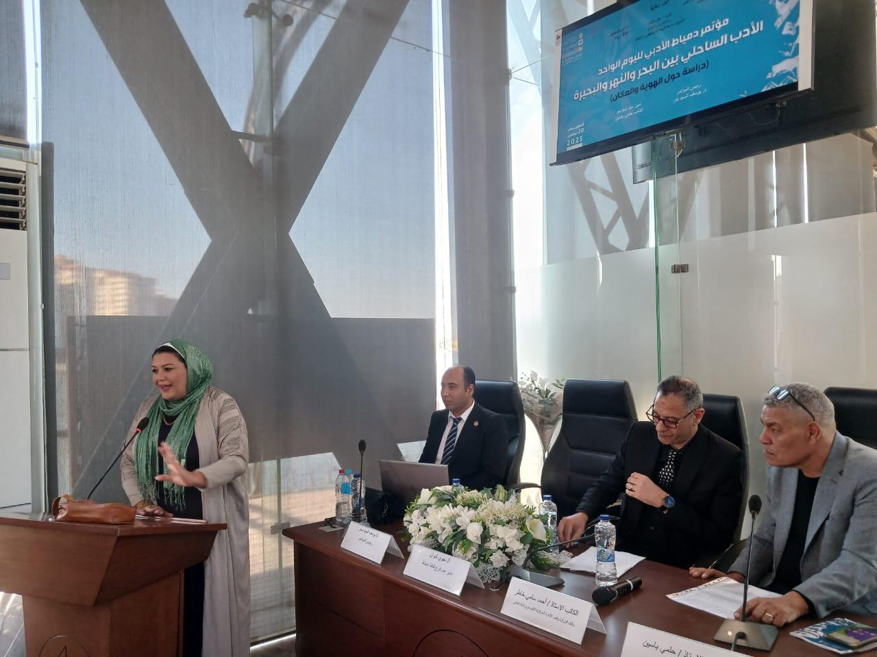 أما البحث الثالث فقدمته الكاتبة آمال سالم بعنوان "اللغة والهوية والتراث في الأدب الساحلي.. قراءة في ملامح الذات والذاكرة البحرية"، حيث عرضت اللغة بوصفها مرآة للهوية الساحلية من خلال مفردات مثل: "الغرق، البوصلة، الريح، الطوفان، الشبكة، الشراع"، مؤكدة أن التراث يمثل ذاكرة جماعية ووقودا للإبداع، مستشهدة بالرموز البلاغية للبحر والأمواج والسفن في الأدب الساحلي.
