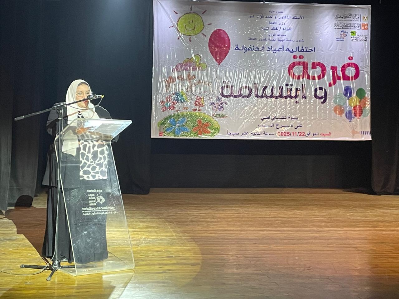 وأشارت "حسن" في كلمتها إلى أن الأطفال هم مستقبل مصر وكنزها البشري الحقيقي، مؤكدة ضرورة رعايتهم ثقافيا وفنيا وفكريا، ودور الثقافة في فتح آفاق المعرفة وبناء شخصية واثقة قادرة على الإبداع والمشاركة الفعالة.