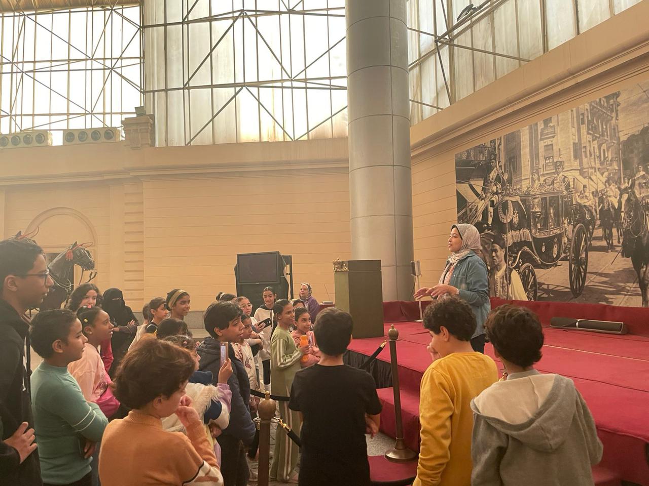 شارك في الجولة عدد من أطفال مكتبة المعادي الثقافية، واستهلت بحديث للآثارية رضوى أحمد، حول تاريخ إنشاء  المتحف موضحة أنه كان بمثابة إسطبل للخيل الملكية قبل تطويره، ليصبح شاهدا على تاريخ وتطور المركبات الملكية بدءا من عصر محمد علي حتى فترة حكم الملك فاروق الأول.