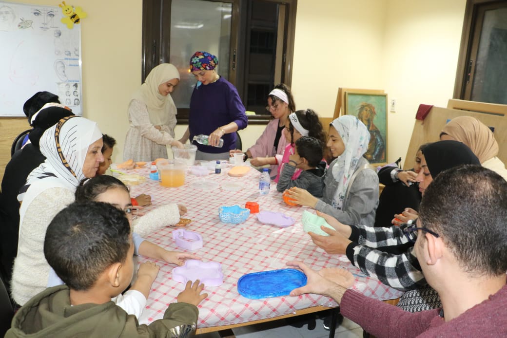 هذا وشهدت ورشة الرسم على الفخار إقبالا ملحوظا من المتدربين، وقامت خلالها الدكتورة أميمة رشاد بتدريبهم على تلوين بعض الأواني الفخارية الصغيرة بألوان متنوعة، وبتصميمات تجمع بين الأصالة والمعاصرة.