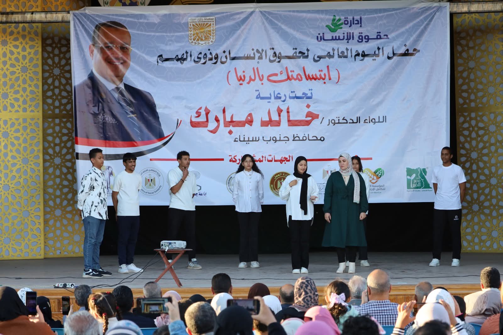 وشهدت الفعالية مشاركة مديرية الشباب والرياضة بعرض فني مسرحي تناول قضايا حقوق الإنسان، وأبرز الطاقات الإبداعية لدى الشباب السيناوي، من إخراج جمال مهران. واختتمت الاحتفالية بتكريم عدد من ذوي الهمم وأسرهم.