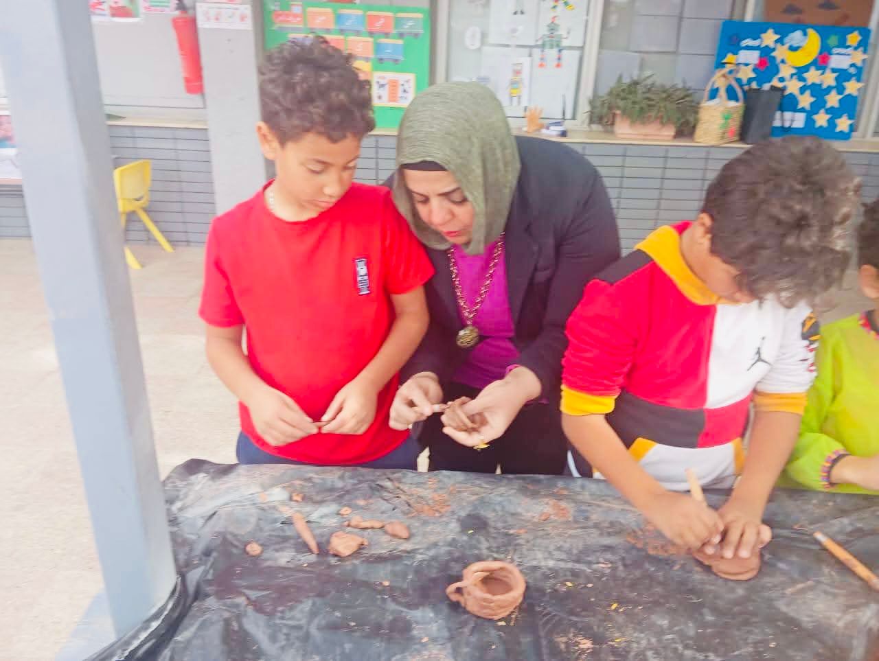 كما قدمت الدكتورة دينا مغيث و الفنانة ريهام عزوز ورشة تشكيلية بالطين الأسواني، تضمنت شرحا وتدريبا عمليا على طريقة التشكيل بالحبال، حيث أوضحت الدكتورة دينا مغيث أن هذه الطريقة تعتمد على لف شرائط أو حبال من الطين فوق بعضها البعض بشكل حلزوني، تبدأ بقاعدة دائرية، ثم يتم دمج كل حبل بالذي يليه باستخدام الخدش والمادة اللاصقة، لبناء جدران الإناء تدريجيا.