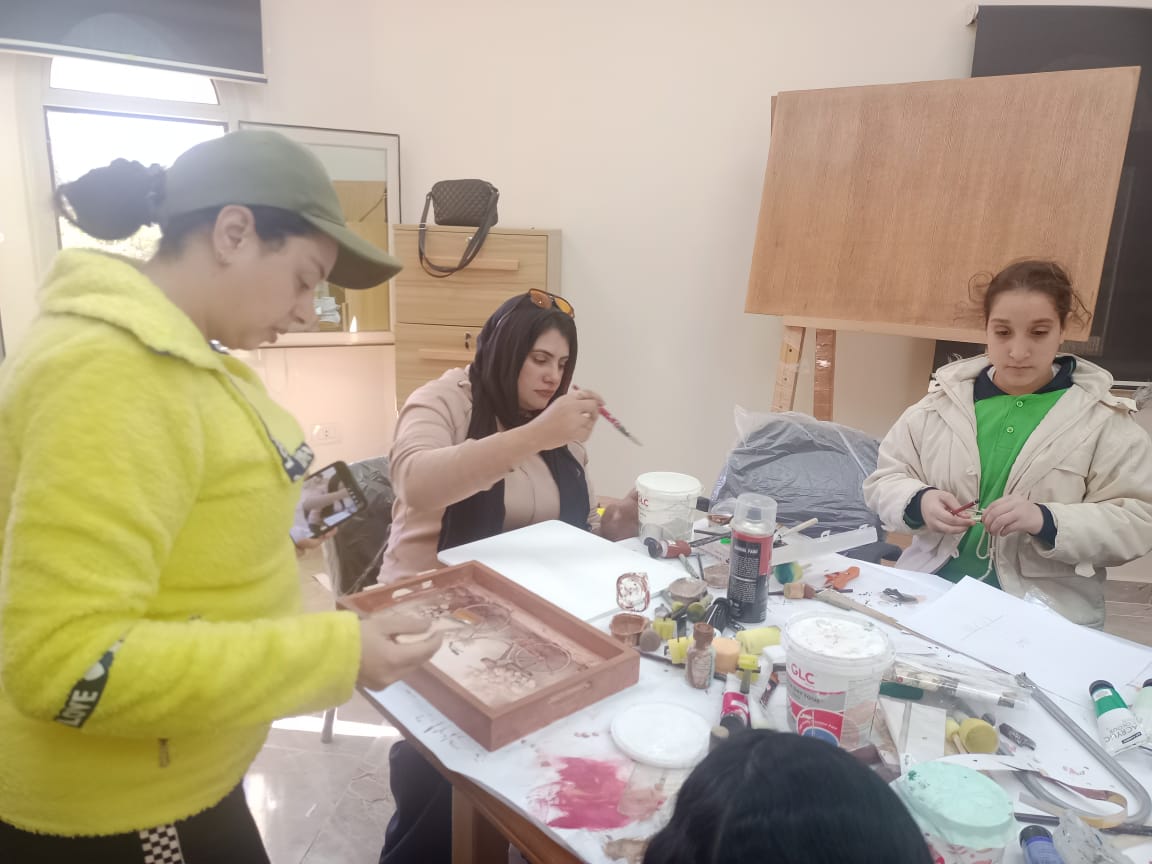 وفي مجال الحلي، أدارت المدربة إيمان ماهر ورشة تدريبية تناولت خطوات تقطيع وتشكيل الخرز والإكسسوارات لصناعة منتجات زخرفية متنوعة، إلى جانب إعادة تدوير بعض الإكسسوارات والأساور، بما يسهم في تنمية مهارات العمل الحرفي والإبداعي لدى المشاركين.