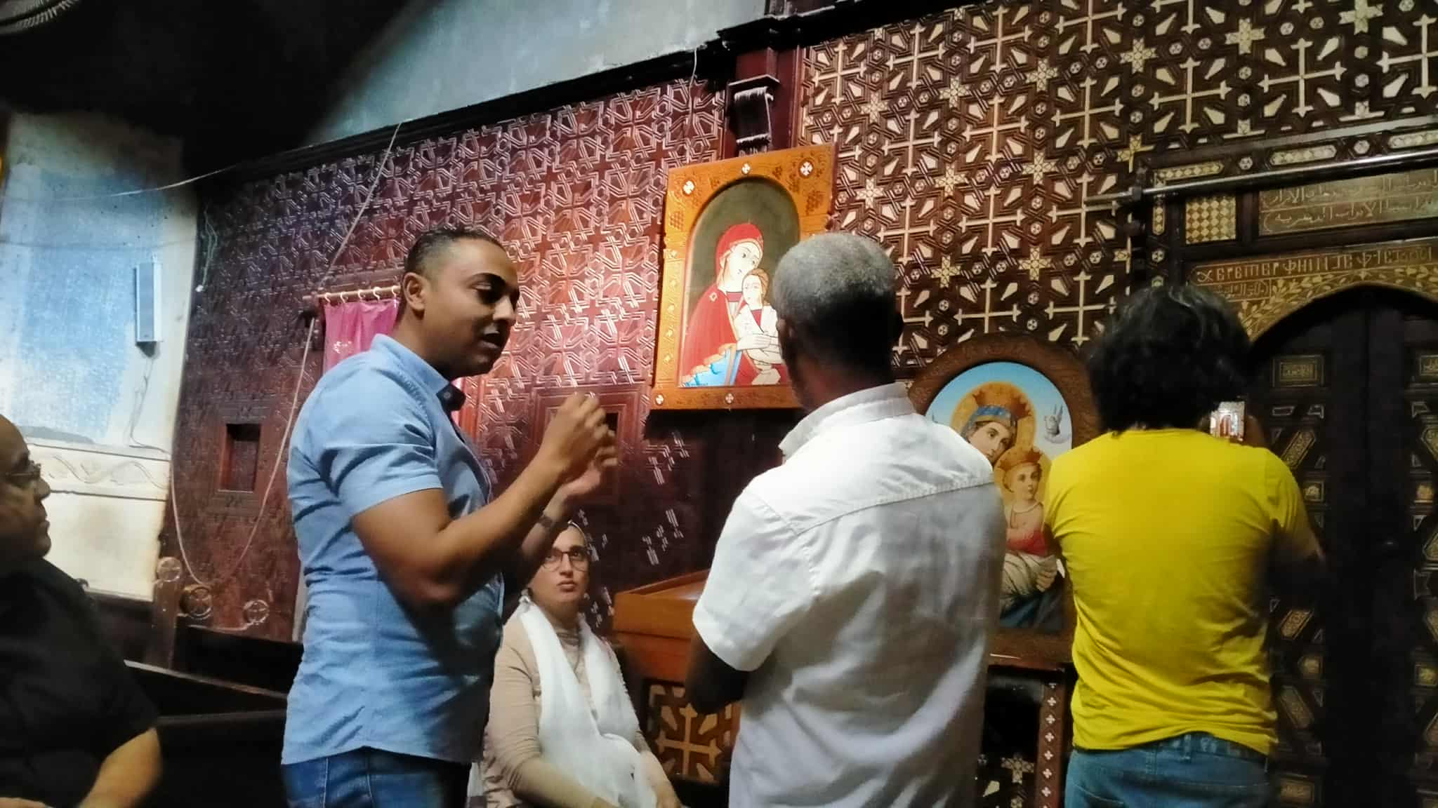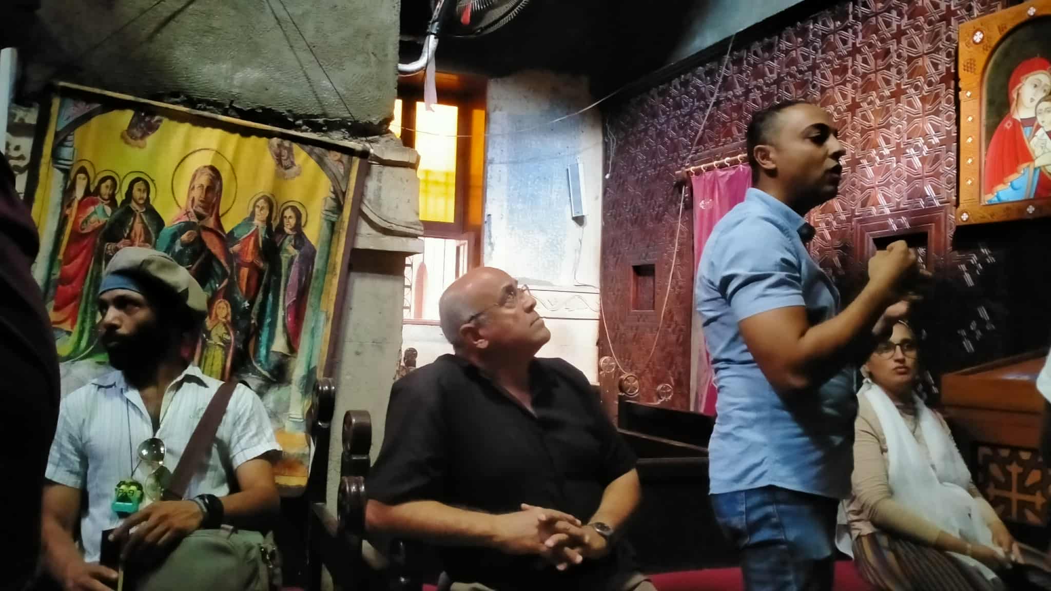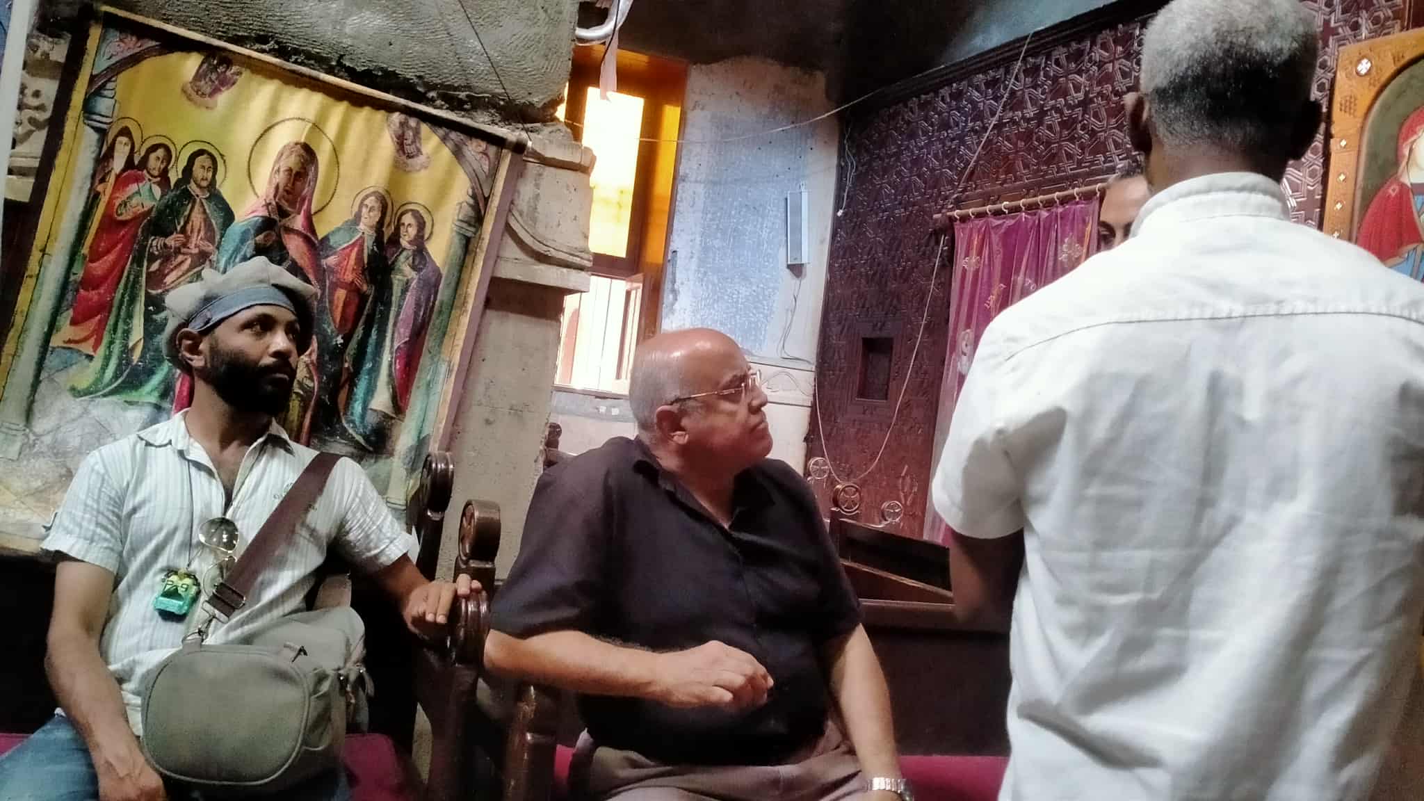وأوضح أن جولة اليوم شملت زيارة قناطر زفتى ثم كنيسة الشهيدة رفقة بسنباط، والتي وصفها بأنها "مبهرة" لما تتميز به من هدوء وزخارف قديمة. وأضاف أنه يخطط لتناول الحالة الروحية في المولد الشعبي داخل عمله الفني، لا سيما حلقات الذكر، ساعيا للتعبير عن لحظة "الهيام والحلم" التي يراها من أكثر اللحظات الفنية صدقا.
