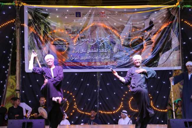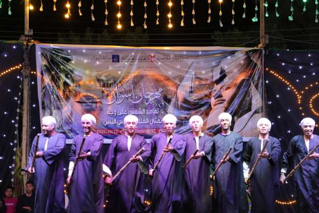أضاءت العروض الفلكلورية لفرق الفنون الشعبية، فعاليات الحفل الفني الثاني الذي شهده مسرح السوق السياحي بمدينة أبو سمبل، في ليلة تعامد الشمس، ضمن مهرجان أسوان الذي يقام تحت رعاية الدكتور أحمد فؤاد هنو وزير الثقافة، واللواء دكتور إسماعيل كمال محافظ أسوان، وتنظمه الهيئة العامة لقصور الثقافة برئاسة اللواء خالد اللبان، احتفالا بظاهرة تعامد الشمس على وجه الملك رمسيس الثاني.