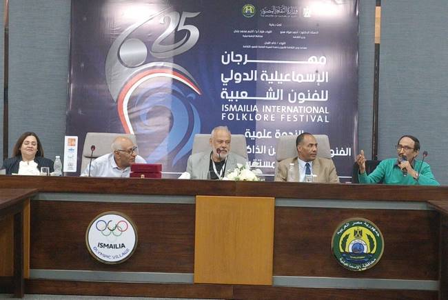 عقدت اليوم الثلاثاء، ندوة بعنوان الفنون الشعبية في زمن العولمة.. التحديات والفرص"، ضمن فعاليات الدورة الخامسة والعشرين من مهرجان الإسماعيلية الدولي للفنون الشعبية، الذي يقام تحت رعاية الدكتور أحمد فؤاد هنو وزير الثقافة، واللواء أكرم جلال محافظ الإسماعيلية، وتنظمه وزارة الثقافة ممثلة في الهيئة العامة لقصور الثقافة، برئاسة اللواء خالد اللبان، والإدارة المركزية للعلاقات الثقافية الدولية، بالتعاون مع محافظة الإسماعيلية، وبالتنسيق مع وزارة الشباب والرياضة، وهيئة قناة السويس، وهيئة تنشيط السياحة.