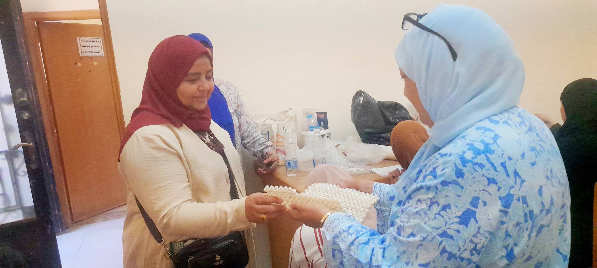 وفي ورشة "الحلي والإكسسوارات" واصلت المدربة سماح فاروق، التدريب على تنفيذ مجموعة من الإكسسوارات مثل السلاسل والحظاظات ومعلقات الموبايل، وقالت براءة سعيد من شمال سيناء إنها اتقنت تصميم الأعقاد والسلاسل، بينما أوضحت آية أنور من أسوان أنها تعلمت طرق التنسيق اللوني.
