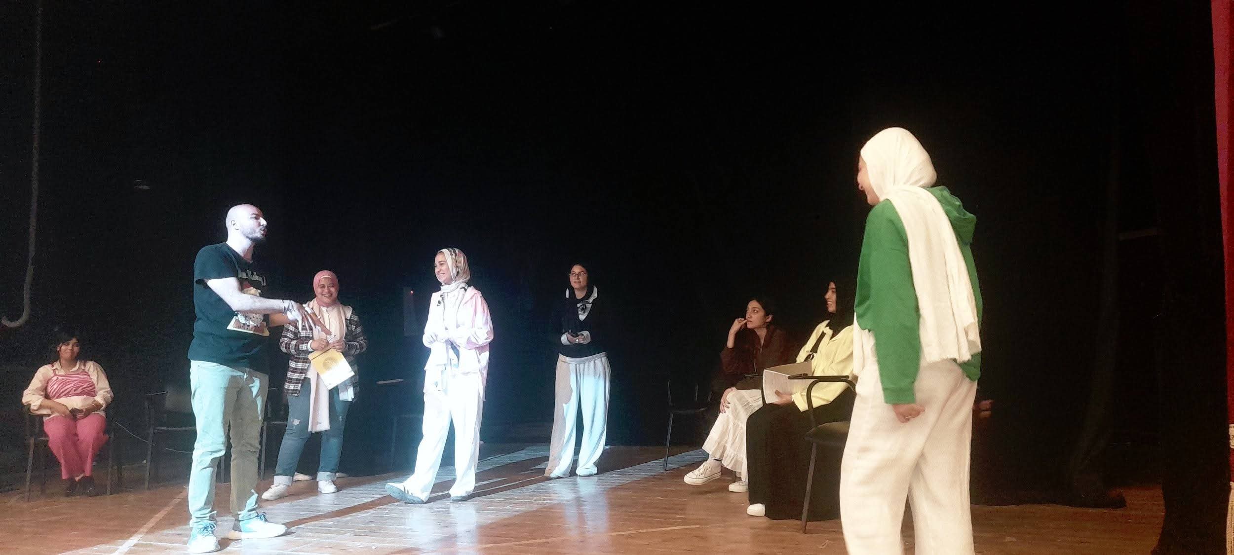 وفي ورشة "المسرح" استكمل المخرج محمد عبد الوهاب بروفات العرض المسرحي "قانون ماعت" المقرر تقديمه في حفل الختام، وأبدت رضوى رمضان من جنوب سيناء إعجابها بالورشة التي ساعدتها في التعرف على الوقوف على خشبة المسرح وإزالة الشعور بالرهبة.