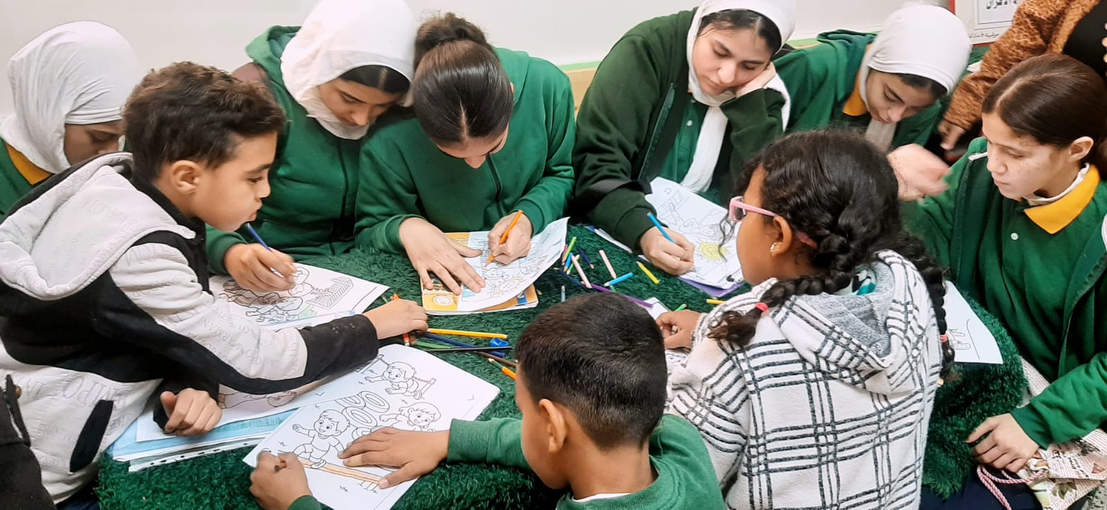 أعقب ذلك ورشة لتعليم الرسم والتلوين تدريب يسرا مقلد، ماهيتاب نبيل، ونرمين وحيد، بحضور عدد من طالبات المدرسة الإعدادية الثانوية الرياضية.