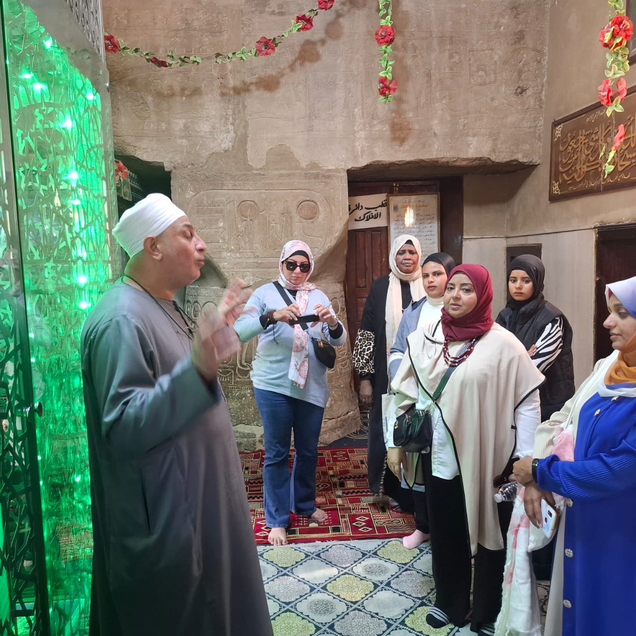 وانتقلت الجولة إلى مسجد أبو الحجاج الأقصري، وتحدث خلالها الشيخ الحجاج محمد أحمد، مقيم الشعائر، عن أهمية المسجد الذي يعد أحد أشهر وأهم الرموز الصوفية في مصر، لما يتمتع به من قيمة تاريخية وروحية عريقة تعود جذورها إلى العصور المصرية القديمة.