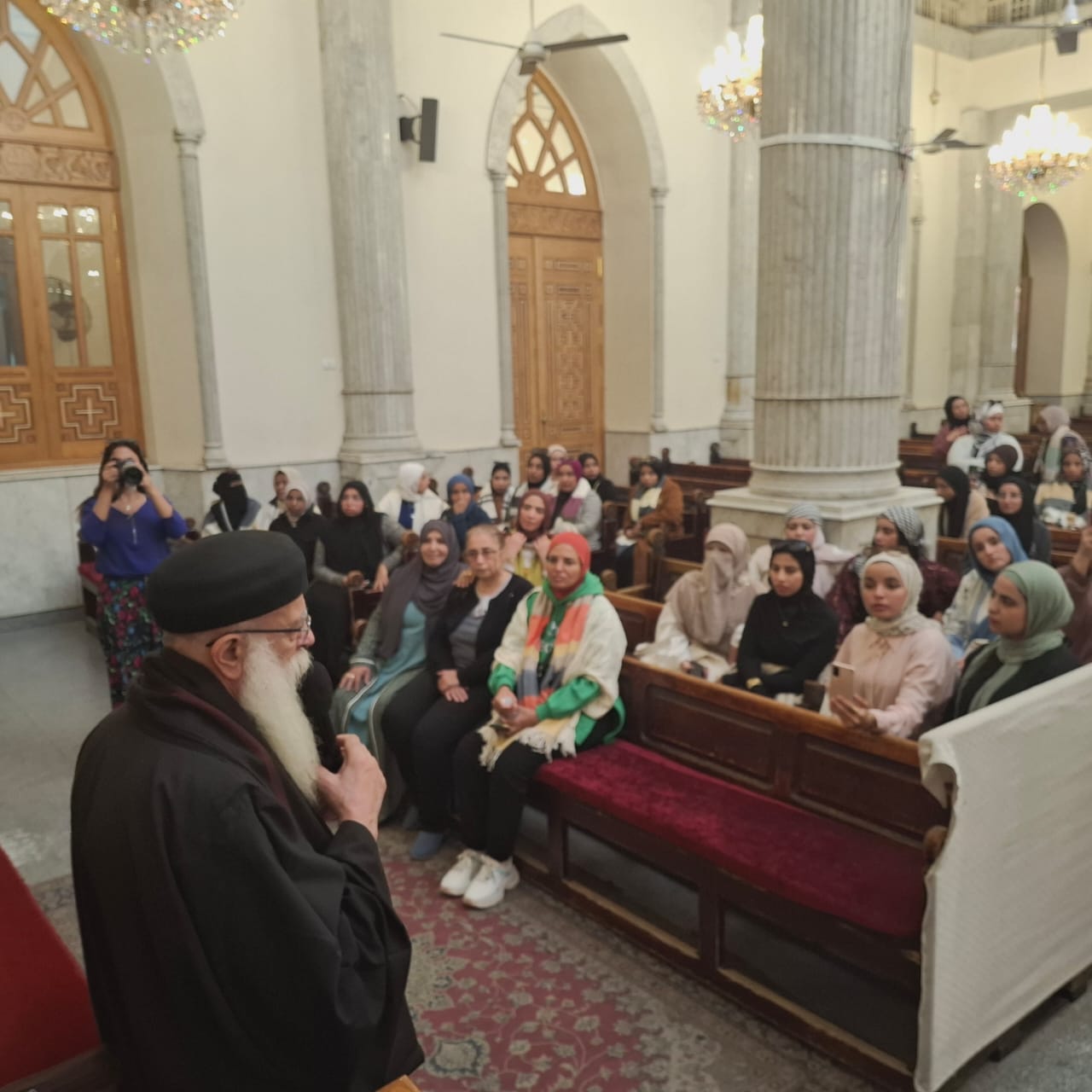 استهلت الجولة بزيارة كاتدرائية السيدة العذراء، وتحدث خلالها القمص أرمانيوس فريد، راعي الكاتدرائية، موضحا أنها افتتحت في عام 1909، ويعد مبناها أحد أهم معالم الكنيسة القبطية في صعيد مصر، لما تحمله من طابع روحاني مميز، يتجلى في الأيقونات الدينية، من بينها أيقونة للسيد المسيح أثناء العشاء الرباني.