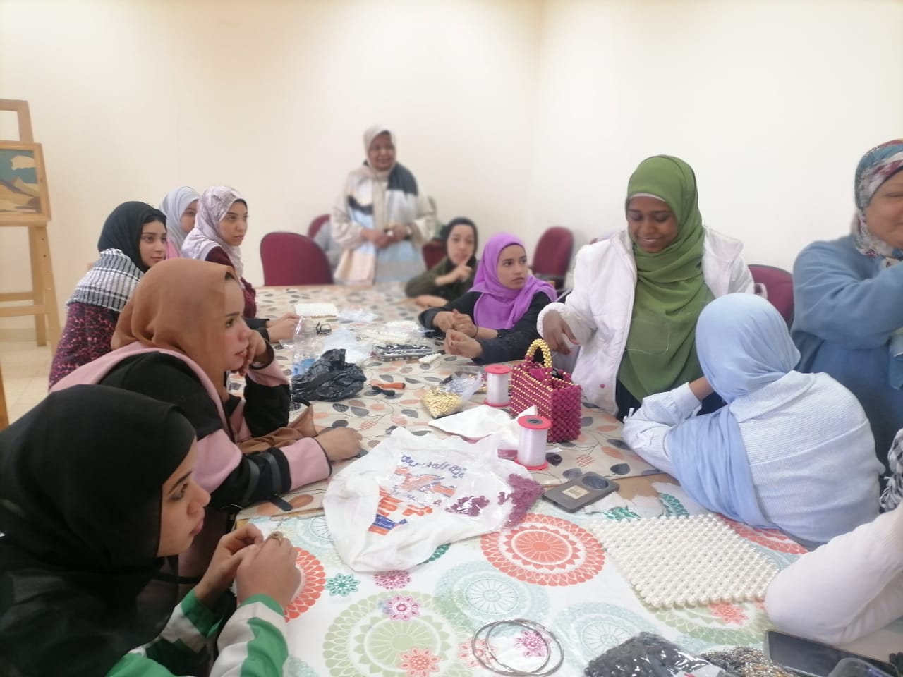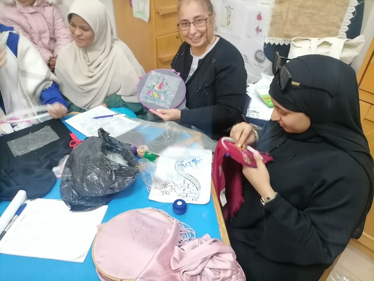 كما تعرفت الفتيات خلال ورشة "التطريز الفلاحي"، على أساليب التطريز التقليدية، مع المدربة إيناس حسين.