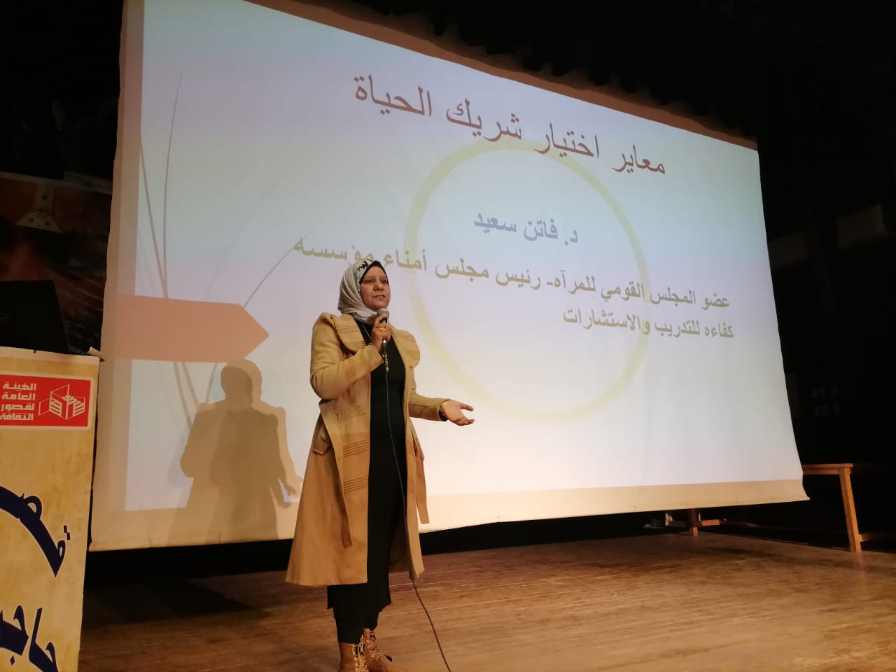 وتواصلت الفعاليات مع لقاء توعوي بقصر ثقافة حاجر العديسات، بعنوان "معايير اختيار شريك الحياة " ناقشت خلاله د. فاتن سعيد، عضو المجلس القومي للمرأة، أسس الاختيار الصحيح لشريك الحياة، وأهمية الشعور بالأمان وتقديم الدعم، مشيرة إلى أن قرار الزواج قرار مصيري يغير مجرى العمر، وليس خطوة عشوائية أو استسلاما للضغوط.