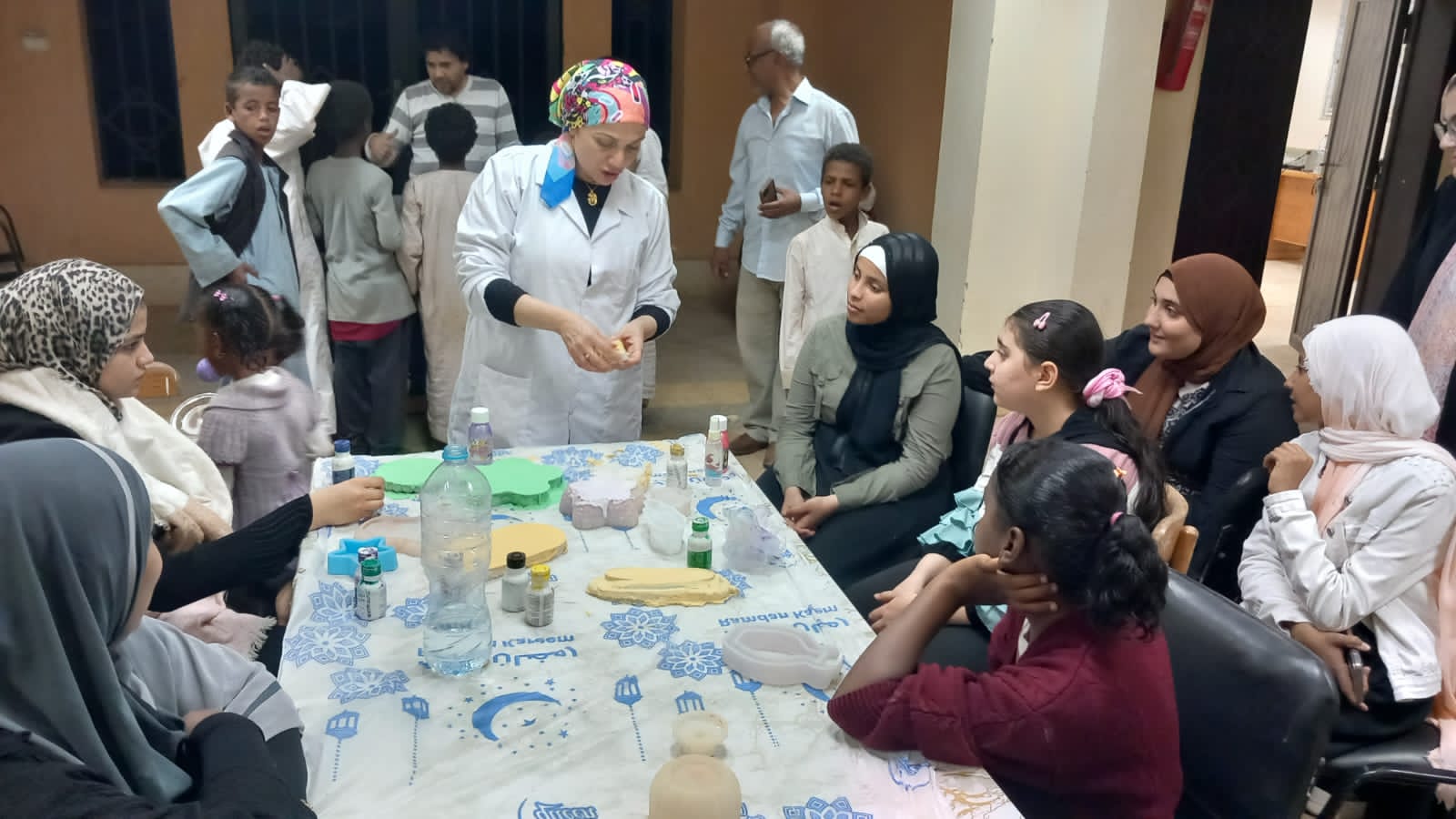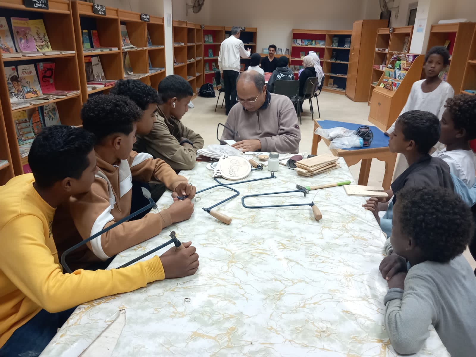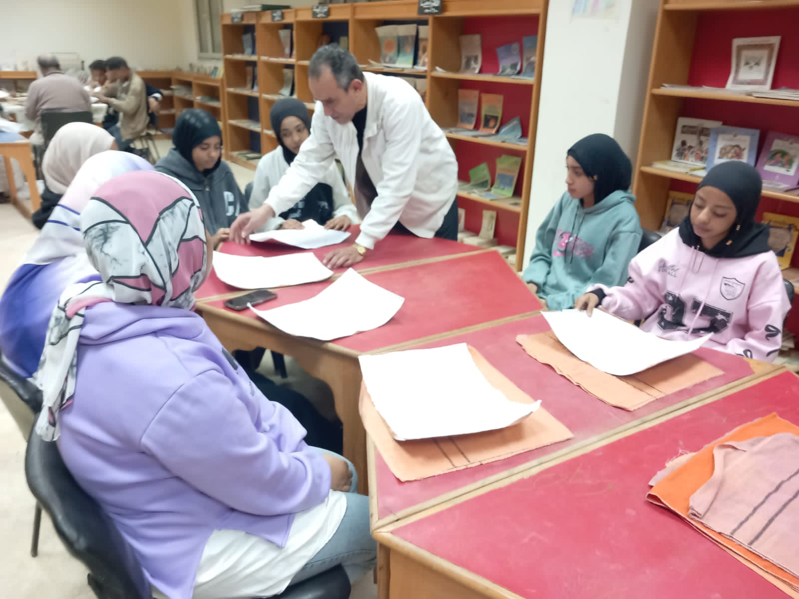 وقدم أيمن السعدني تعريفا بورشة "الأركت"، موضحا أنها تهدف إلى تكوين قطع ديكورية ذات طابع جمالي باستخدام بقايا الأخشاب، بما يسهم في تنمية الحس الفني وإعادة توظيف الخامات المتاحة.