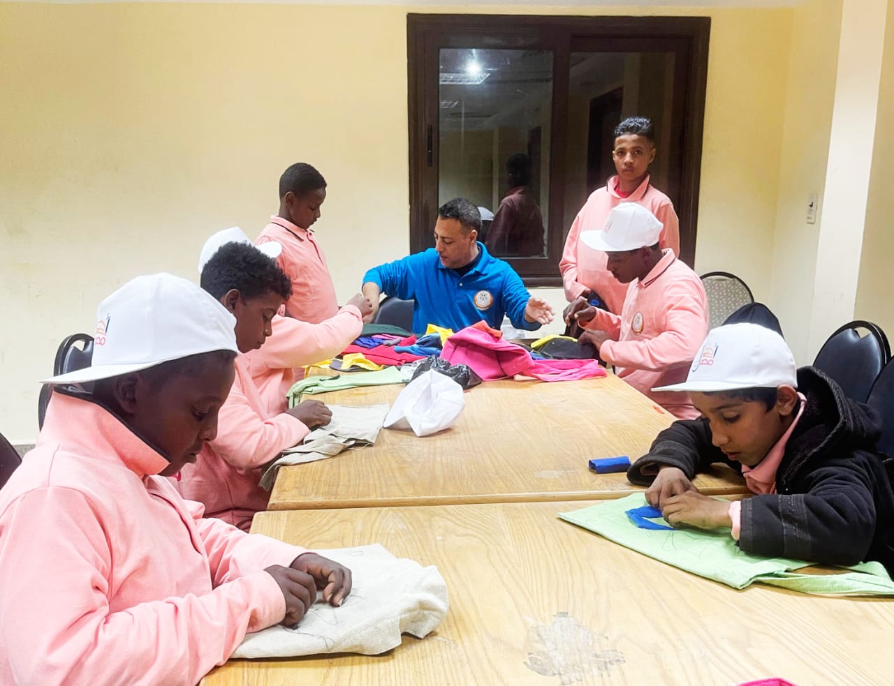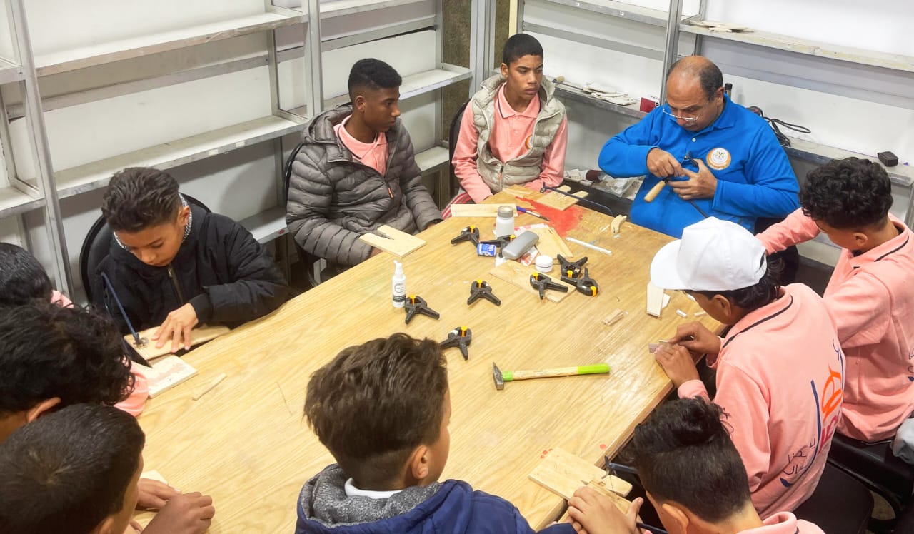 كما تعرف الأطفال على فن الخيامية وأساليبه اليدوية، من خلال ورشة المدرب عماد عاشور، فيما عرف المدرب أيمن السعدني كيفية الإمساك بمنشار الأركت لاستخدامه بشكل آمن.
