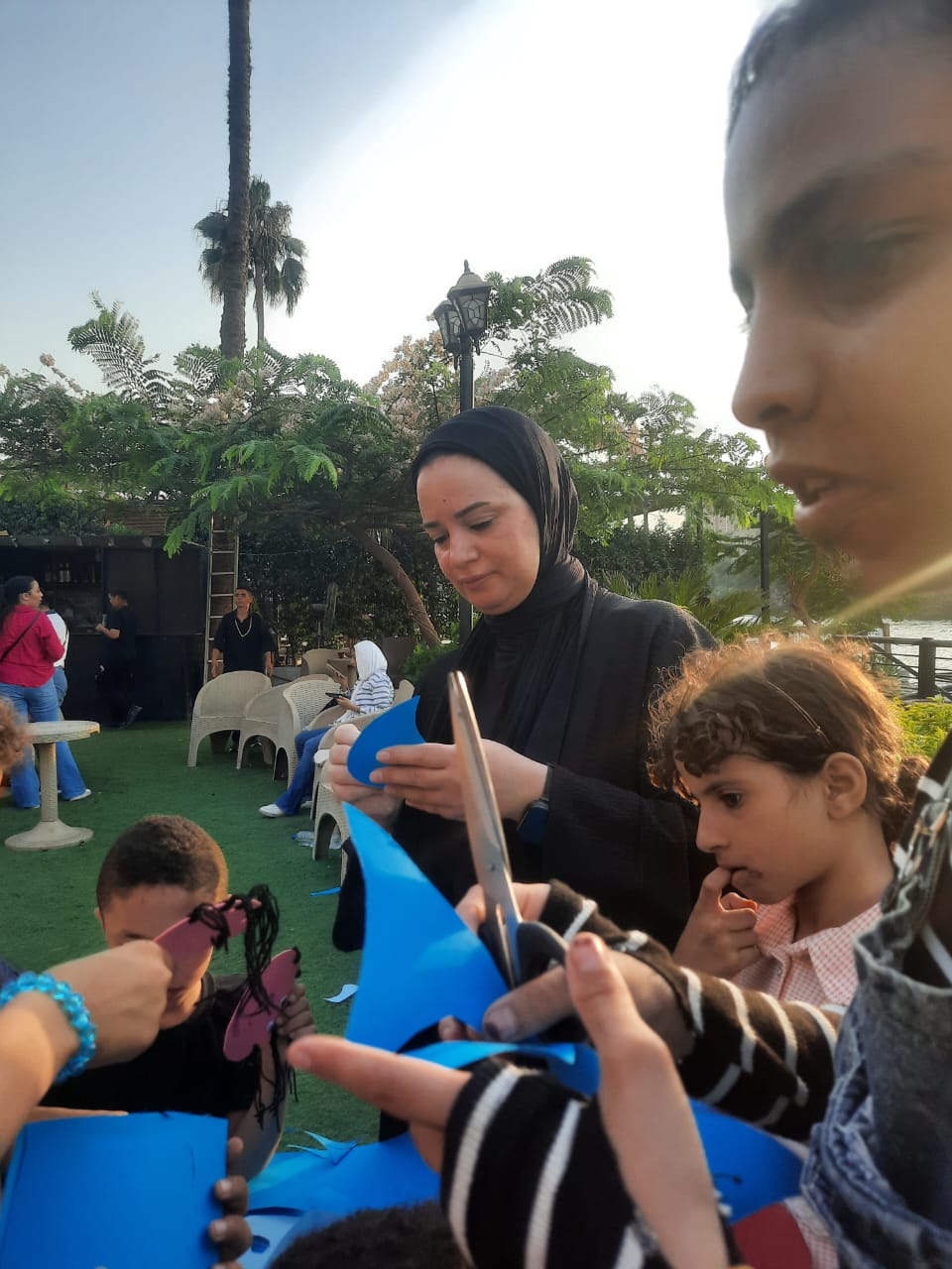 كما قدمت الفنانة د. أميرة سعد ورشة لعمل جدارية بعنوان "النيل شريان الحياة" باستخدام تقنيات الـ"Paper cut" والأوريجامي.