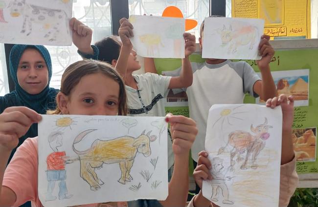 كما نفذت مكتبة علي الراعي بالرياح، ورشة حكي للأطفال بعنوان "معلومة ورسمة"، تحدث خلالها محمد عبد العزيز أمين المكتبة، عن مظاهر الحياة في الريف ودور الفلاح في تحقيق الأمن الغذائي.