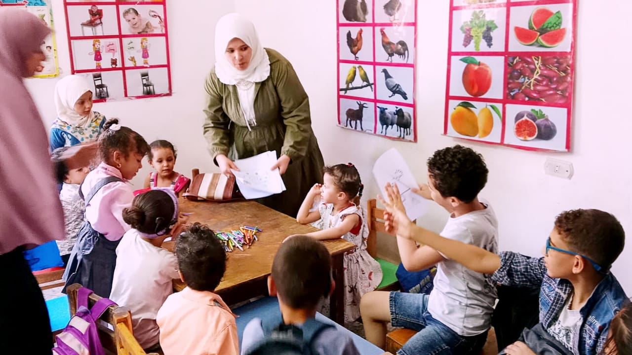أعقب ذلك ورشة فنية قادتها الفنانة شيماء إسماعيل، دربت خلالها الأطفال على التعرف إلى الأشكال الهندسية وتلوينها باستخدام الألوان الخشبية.