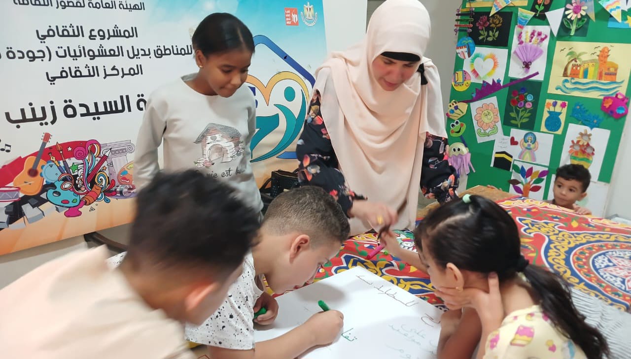 وفي روضة السيدة زينب، قدم فنانو قصر ثقافة ٢٥ يناير عددا من الورش الفنية والثقافية، منها تصميم لافتات تحمل عبارات تشجيعية لحث الطلاب على الدراسة والالتزام بالمؤسسة التعليمية نفذتها ريهام نبيل، وصناعة حافظات أقلام من الفوم قدمتها مريم حسن، إلى جانب ورشة للرسم على الوجوه لناريمان نبيل.