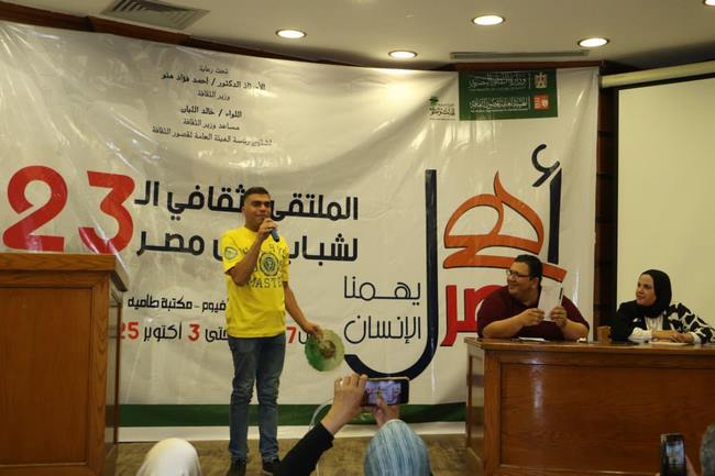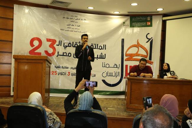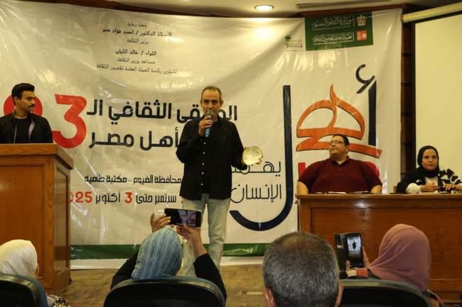 انطلقت اليوم فعاليات الملتقى الثقافي الثالث والعشرين لشباب المحافظات الحدودية ضمن مشروع "أهل مصر" بمركز التعليم المدني بمحافظة الفيوم، تحت رعاية الدكتور أحمد فؤاد هنو وزير الثقافة، وتنظمه الهيئة العامة لقصور الثقافة برئاسة اللواء خالد اللبان، خلال الفترة من 27 سبتمبر حتى 3 أكتوبر المقبل، تحت شعار "يهمنا الإنسان".