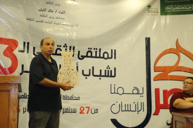 كما نقل تحيات اللواء خالد اللبان رئيس الهيئة، والدكتورة حنان موسى رئيس الإدارة المركزية للدراسات والبحوث، مثمنا دعمهما للمشروعات الثقافية والفنية ومتابعتهما المستمرة لمنتجات الورش وتحويلها إلى مشروعات قائمة.
