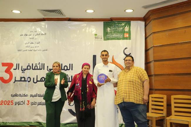شهدت قاعة المؤتمرات بمركز التعليم المدني بمحافظة الفيوم، حفل ختام الملتقى الثقافي الثالث والعشرين لشباب المحافظات الحدودية، ضمن مشروع "أهل مصر"، الذي أقيم برعاية الدكتور أحمد فؤاد هنو، وزير الثقافة، ونظمته الهيئة العامة لقصور الثقافة، برئاسة اللواء خالد اللبان، تحت شعار "يهمنا الإنسان".