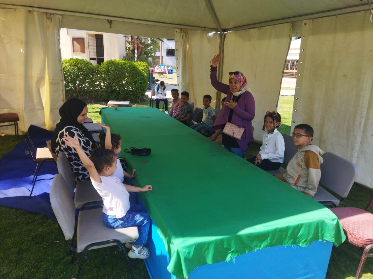 كما قدم عرض مسرح عرائس بعنوان "كائن البطريق"، أعقبه تنظيم مسابقة ثقافية "سؤال وجواب" مع توزيع جوائز وهدايا على الأطفال، إلى جانب ورشة أقنعة بالفوم قدمتها رشا عمارة.