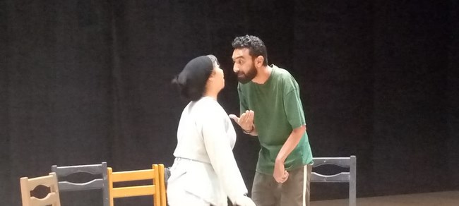 وتواصلت العروض بمسرحية "أنا حقًا أعترض" تأليف وإخراج محمد فؤاد، التي تطرح تساؤلا حول أثر الصمت والكلمة، وكيف يمكن لكلمة اعتراض واحدة أن تنقذ الإنسان من استسلامه لأفكاره القاتلة، لتصبح المقاومة بالكلمة سبيلا للوعي والنجاة.