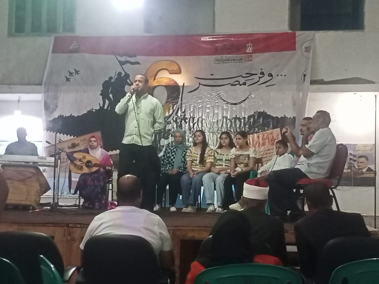 وفي مكتبة الطفل والشباب بالفرافرة، أقيمت احتفالية فنية تضمنت عرضا لفرقة التلقائيين للفن الشعبي بالفرافرة التي قدمت أغاني وطنية وأعمالا من التراث تعبيرا عن روح النصر، كما نظمت فقرة لاكتشاف المواهب الفنية في الغناء لدى أطفال المكتبة وروادها.