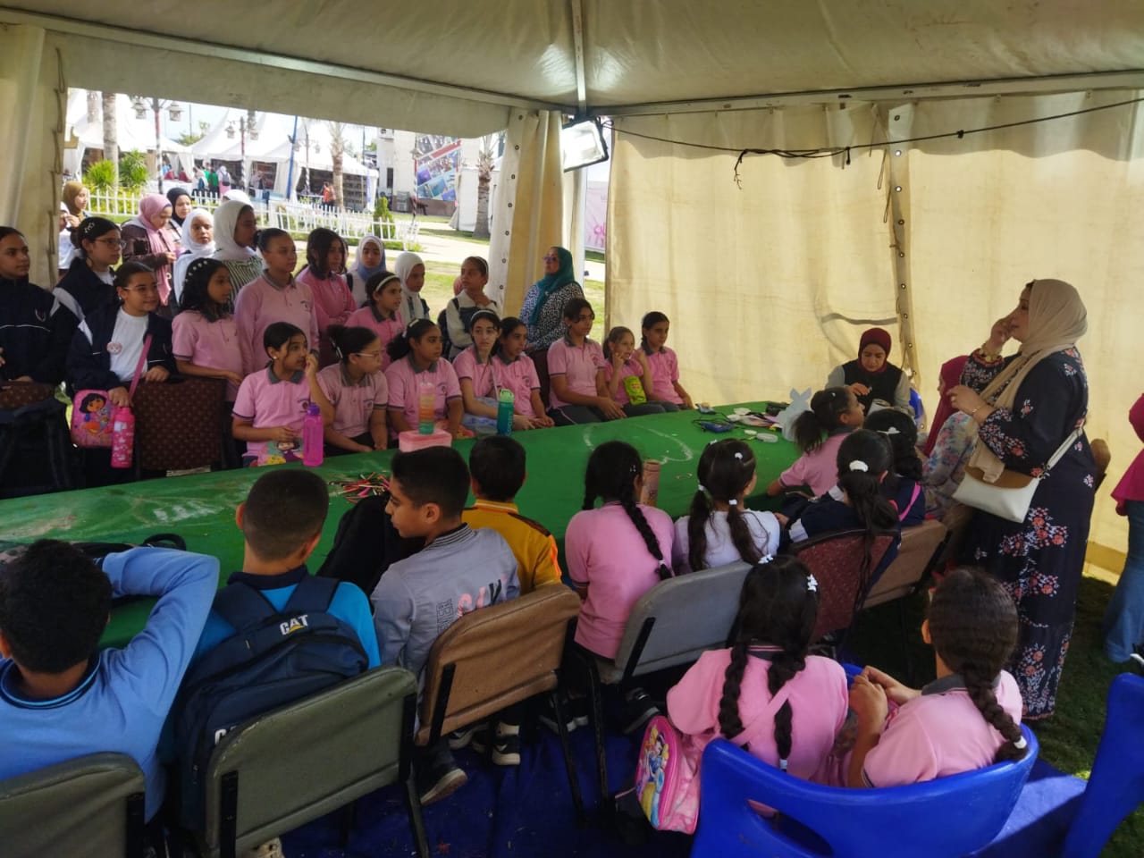 وتواصلت الفعاليات مع ورشة لتعليم مبادئ لغة الإشارة، إلى جانب عدد من الورش الإبداعية منها تعليم رسم على التوال والكانسون بالألوان الأكريليك، وورشة رسم وتلوين وألعاب تفاعلية بالتعاون مع شركة مياه البحيرة.