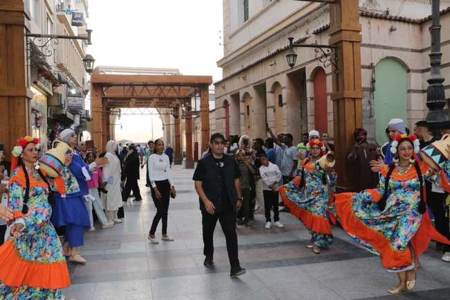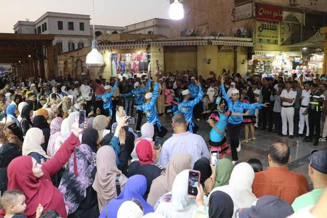 انطلق الديفيليه من سوق مدينة أسوان بمشاركة جماهيرية واسعة، حيث قدمت فرق الفنون الشعبية لوحات استعراضية متنوعة جسدت ثراء التراث المصري وتعدد ألوانه الثقافية والفنية، وسط تفاعل كبير من الأهالي والزوار الذين توافدوا لمتابعة العروض، وذلك بحضور إبراهيم سليمان رئيس مدينة أسوان، ومحمود عبد الوهاب مدير عام إقليم جنوب الصعيد، وإيمان حمدي مدير عام المهرجانات، ويوسف محمود مدير عام ثقافة أسوان.