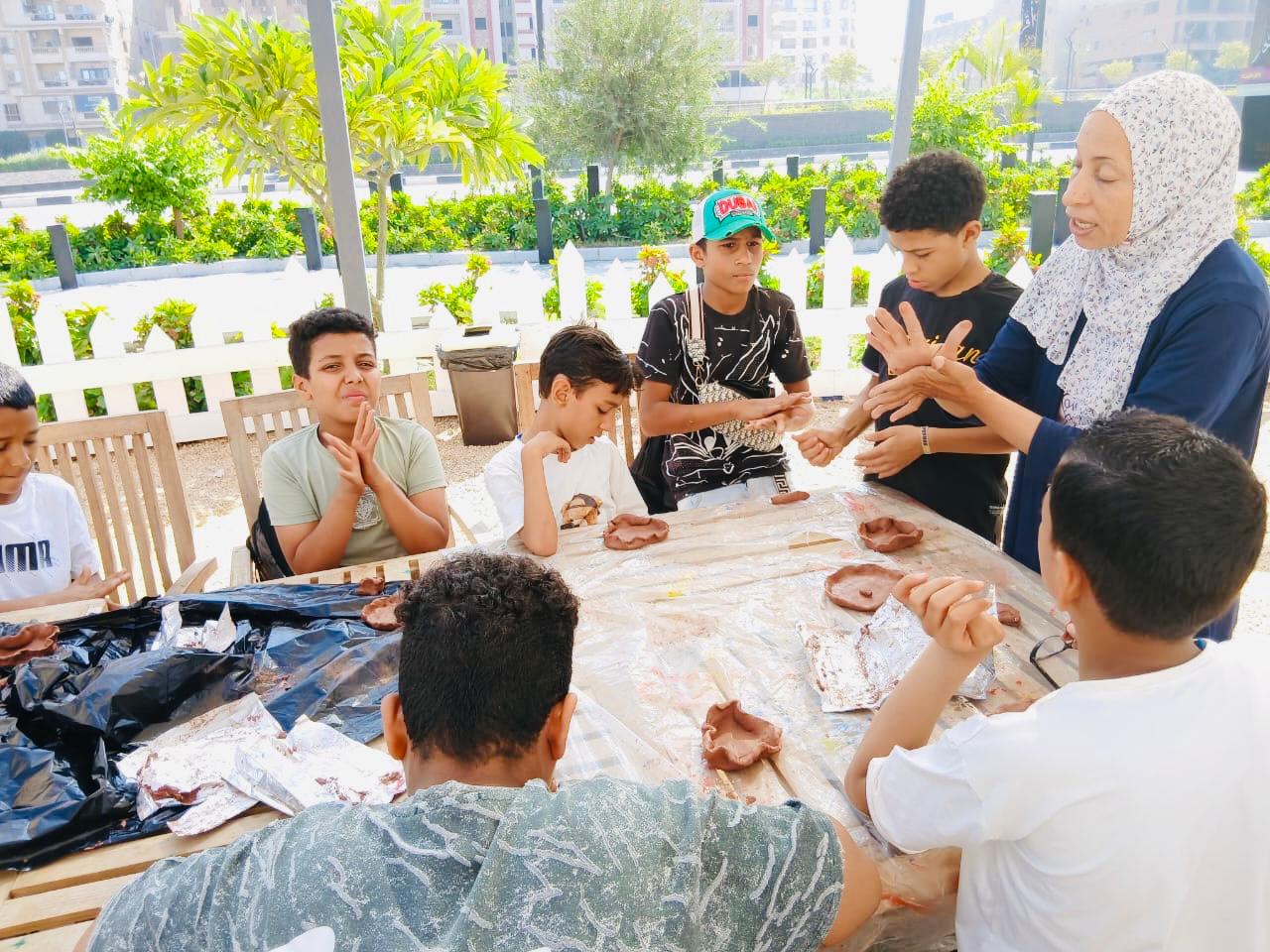 كما أُقيمت ورشة حرفية للتشكيل بالطين الأسواني قدمتها الدكتورة إيمان نوار، بهدف توظيف الإبداع والابتكار لدى الأطفال لإنتاج أعمال فنية مجسمة من وحي خيالهم، حيث استخدموا أسلوب التشكيل الحر في تنفيذ وحدات خزفية وتزيينها بورود وأوراق شجر مصنوعة من الطين الأسواني.