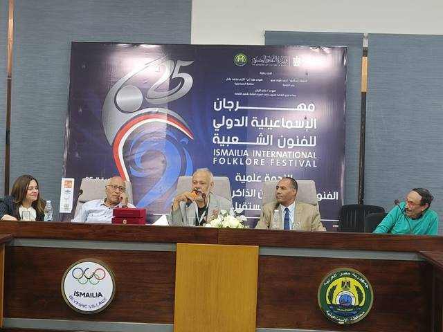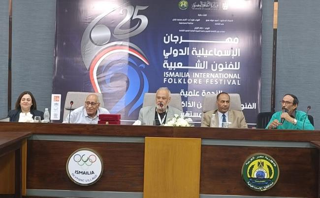 عقدت اليوم الثلاثاء، ندوة بعنوان الفنون الشعبية في زمن العولمة.. التحديات والفرص"، ضمن فعاليات الدورة الخامسة والعشرين من مهرجان الإسماعيلية الدولي للفنون الشعبية، الذي يقام تحت رعاية الدكتور أحمد فؤاد هنو وزير الثقافة، واللواء أكرم جلال محافظ الإسماعيلية، وتنظمه وزارة الثقافة ممثلة في الهيئة العامة لقصور الثقافة، برئاسة اللواء خالد اللبان، والإدارة المركزية للعلاقات الثقافية الدولية، بالتعاون مع محافظة الإسماعيلية، وبالتنسيق مع وزارة الشباب والرياضة، وهيئة قناة السويس، وهيئة تنشيط السياحة.