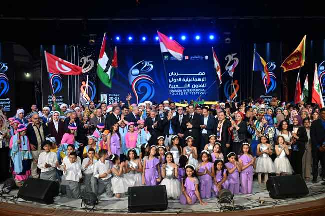 شهد المسرح الروماني بالإسماعيلية حفل ختام فعاليات مهرجان الإسماعيلية الدولي للفنون الشعبية في دورته الخامسة والعشرين "اليوبيل الفضي"، الذي أقيم تحت رعاية الدكتور أحمد فؤاد هنو وزير الثقافة، ونظمته وزارة الثقافة ممثلة في الهيئة العامة لقصور الثقافة والإدارة المركزية للعلاقات الثقافية الدولية، بالتعاون مع محافظة الإسماعيلية، وبالتنسيق مع وزارة الشباب والرياضة وهيئة قناة السويس وهيئة تنشيط السياحة.