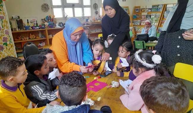 وفي مكتبة الكعابي الفرعية أقيمت محاضرة بعنوان "القيم الأخلاقية وتعزيز الثقة بالنفس"، تحدثت خلالها أماني محمود أخصائي المكتبة، عن أهمية التحلي بالأخلاق الحميدة ودورها في بناء الشخصية الإيجابية وتنمية الثقة بالنفس لدى الأطفال، أعقبها ورشة تصميم لوحات فنية عن نظافة البيئة، تدريب أماني محمود.