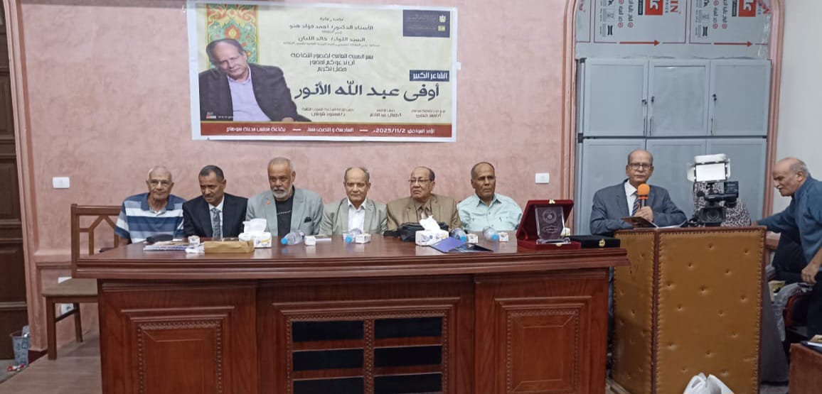 ثم استعرض مسيرة الشاعر أوفى الأنور الذي وصفه بأنه "يمشي وفيا على طريق النور"، مؤكدا أنه جمع في مسيرته بين القصيدة والقيادة، وبين الفكر والنقد، وبين التكوين الأكاديمي والإبداع الإنساني، فصار علامة مضيئة في سجل شعراء الصعيد.