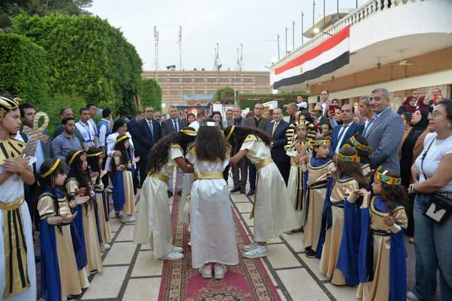 بدأت الفعاليات بعرض فني بمشاركة عدد كبير من طلاب المدارس لوحات فنية نابضة بالحياة جسدت عظمة المصري القديم بارتداء الأزياء ذات التصميمات المصرية القديمة.