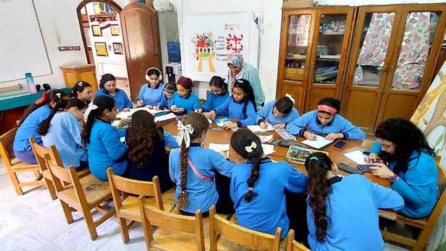 كما أقام القصر ورشة بمدرسة الأمل للصم والبكم الابتدائية المشتركة بالسيدة نفيسة، تضمنت ورشة تلوين أشكال مختلفة من الحضارة المصرية القديمة، وأخرى لعمل تصميمات مستوحاة من الزي المصري القديم.