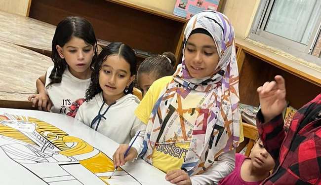 كما شارك الطلاب في تصميم جدارية عن المتحف المصري الكبير كامل.