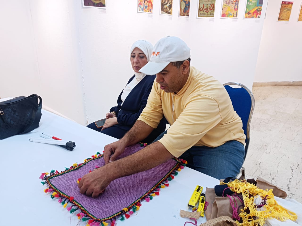ونفذت ورشة مشغولات بالخيش، تعرف خلالها المتدربون على طرق تشكيل الخيش وتزيينه لإنتاج أعمال فنية تعكس ذوقهم وقدراتهم الإبداعية، في أجواء تفاعلية.