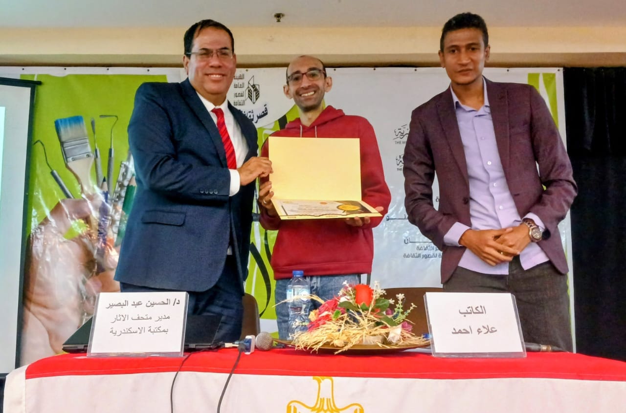 أدار الندوة الأديب علاء أحمد، وشارك بها الكاتب وعالم المصريات د. حسين عبد البصير، مدير متحف الآثار بمكتبة الإسكندرية.