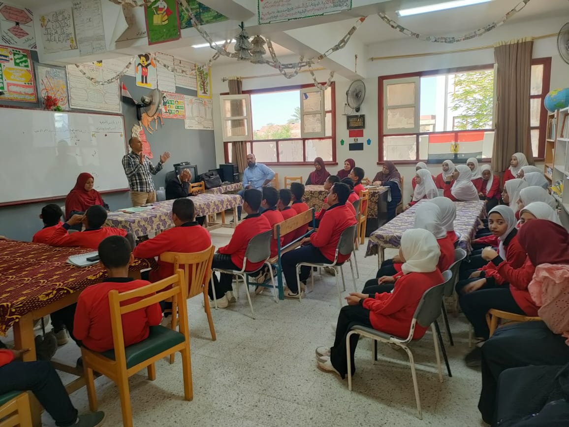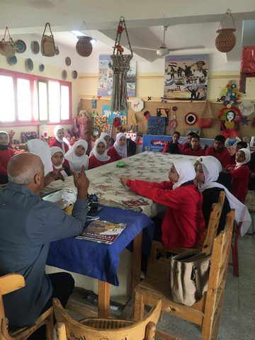 وفي مدرسة ناصر الإعدادية قدم علاء حسين، كبير أخصائيين بالهيئة المصرية العامة لتنشيط السياحة، لقاء أوضح خلاله الفرق بين التراث المادي وغير المادي، أعقبه ورشة تصميم لوحات فنية مستوحاة من الحضارة المصرية القديمة نفذتها نفيسة فاروق.