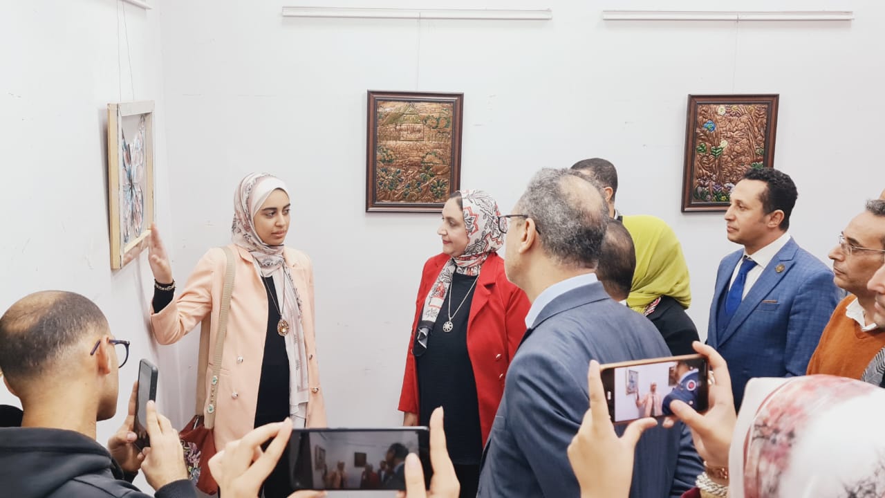 وعبر الفنانون عن سعادتهم بالمشاركة، وأوضحت د. أماني فوزي، أستاذ أشغال المعادن والحلي بقسم التربية الفنية كلية التربية النوعية بجامعة الزقازيق، أنها قدمت مجموعة من الأعمال المنفذة على النحاس بتقنية الطرق بالبارز والغائر، جمعت بين الرموز المصرية القديمة المصاغة بإيقاع زخرفي حديث، وبين المناظر الطبيعية والتشكيلات النباتية التي تعتمد على العلاقات بين الخطوط العضوية والملامس المعدنية، وأضافت أنه تم استخدام المينا الباردة كوسيط لوني يمنح السطح طبقات شفافة وتدرجات تعزز البنية التشكيلية وتظهر التفاصيل الدقيقة للنقوش.
