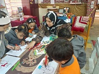 إضافة إلى ورشة للتشكيل بالصلصال لتنمية مهارات الإبداع والتفكير والتآزر البصري والعصبي، وورش لعمل شجرة الكريسماس من أوراق الكانسون الملونة والجليتر، إلى جانب تنفيذ نتيجة للعام الجديد باستخدام الورق المقوى.