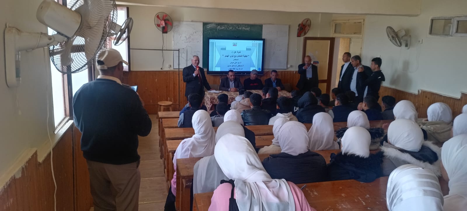 كما أقيمت محاضرة بعنوان "كيفية تعامل مع ذوي الهمم"، أكد خلالها سيد علي، مدرس أول لغة عربية، على ضرورة توفير بيئة داعمة لذوي الاحتياجات الخاصة مع تشجيعهم على المشاركة في الأنشطة المجتمعية.