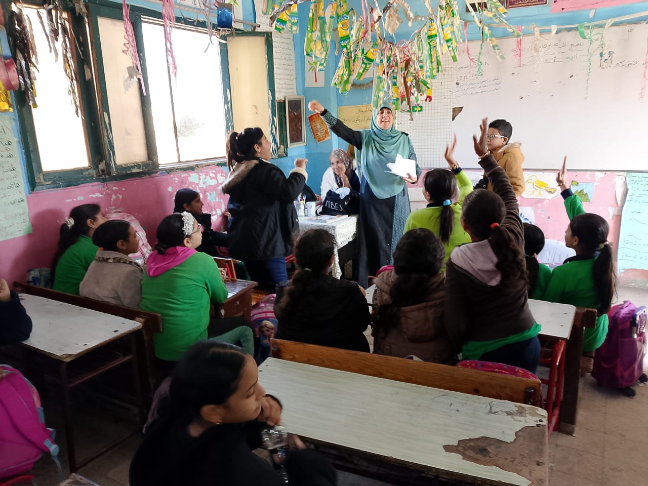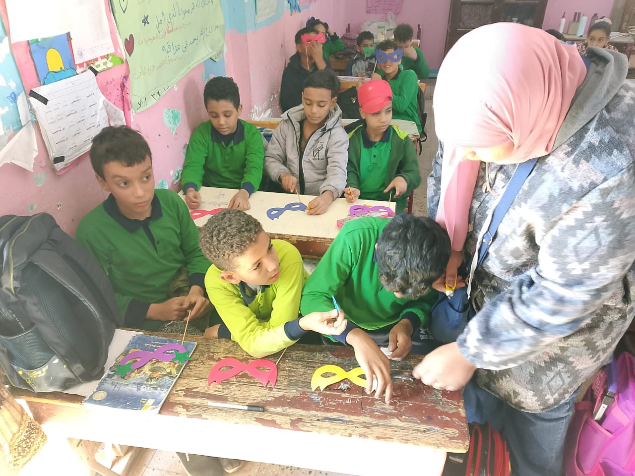 وفي مدرسة السلام الابتدائية، قدم فنانو قصر ثقافة 25 يناير مجموعة من الورش الفنية الهادفة إلى تنمية مهارات الابتكار والإبداع لدى التلاميذ، وتعليمهم إعادة تدوير الخامات البسيطة لصناعة مشغولات يمكن الاستفادة منها في الحياة اليومية.