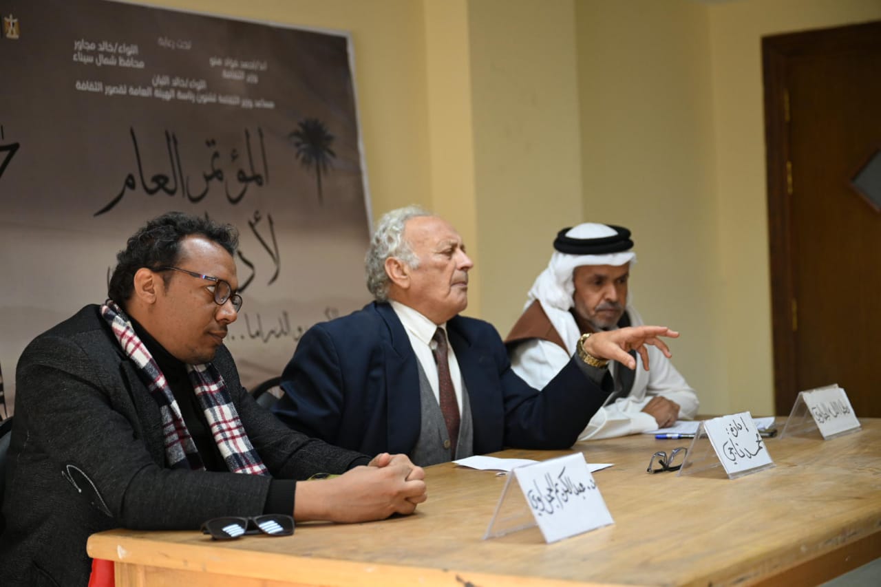وأشار إلى أن حضور الأدب الشعبي المعاصر لا يقتصر على الذاكرة الشفاهية، بل يمتد إلى مجالات الفنون والمسرح والموسيقى والتعليم والإعلام الجديد، مؤكدا أن تراث سيناء يعد نموذجا ثريا يجسد تلاقي الأصالة بالتحدي، بما يحمله من قيم الكرم والشجاعة والوفاء والانتماء للأرض، بوصفه وثيقة حية لتجارب الإنسان في بيئة قاسية وتاريخ طويل من الصمود.