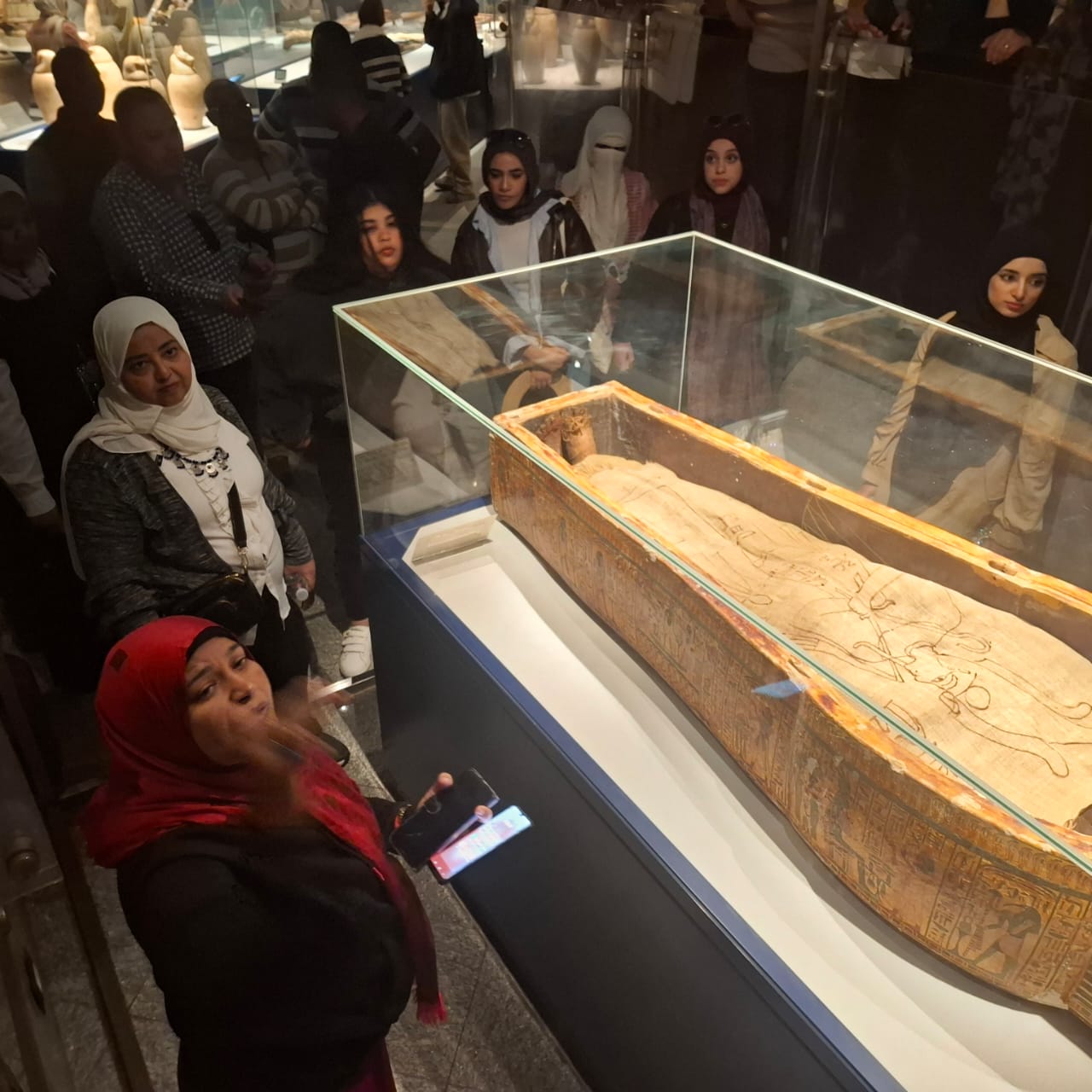 وتواصلت فعاليات الزيارة بحضور الدكتورة دينا هويدي، مدير عام الإدارة العامة لثقافة المرأة، والمدير التنفيذي لمشروع أهل مصر للفتاة والمرأة، حيث أوضحت وكيل المتحف أن المتحف يضم مجموعة مميزة من التوابيت المزينة بأغطية تحمل رسومات ونقوشًا دينية، إلى جانب تمائم كانت توضع مع المتوفى لتوفير الحماية في الحياة الآخرة، فضلا عن الأدوات الطبية المستخدمة في عملية التحنيط، والمواد المستخدمة فيها من زيوت وعطور وملح النطرون.
